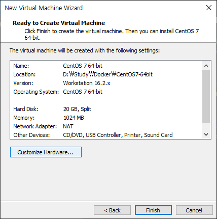 5. 다운받은 이미지 파일을 CDROM에 넣으러 들어가야 하기때문에 Customize Hardware에 진입한다.